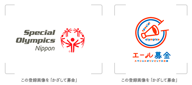 - スマートフォン専用アプリ「かざして募金」をインストールし、スペシャルオリンピックス 日本が「登録されたロゴなどの画像」をスマートフォンでかざすと簡単に募金ができます。